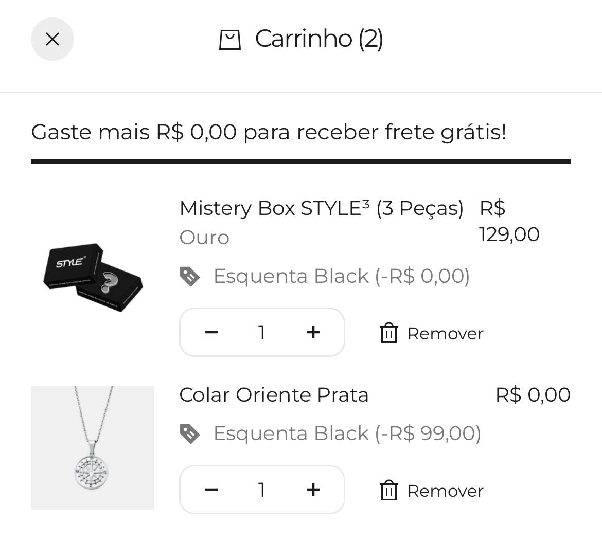 O sistema aplicará o desconto automático, deixando o colar gratuito no fechamento da compra.