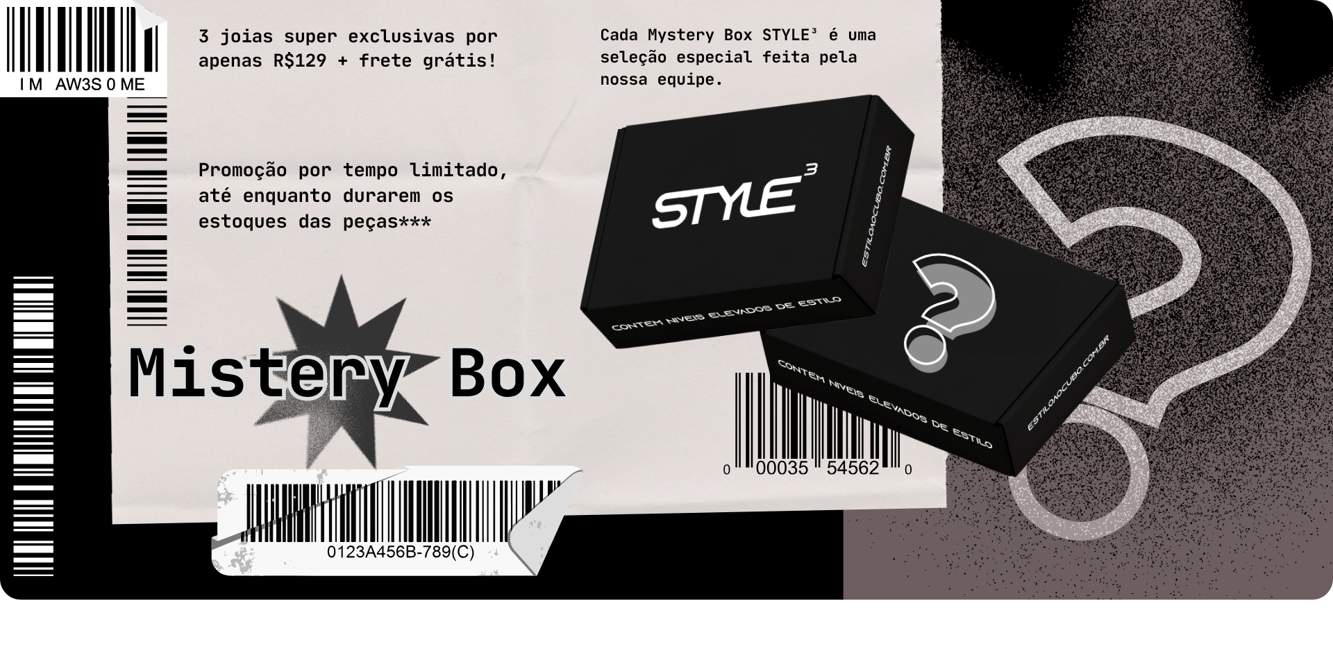 Cada Mystery Box STYLE³ é uma seleção especial feita pela nossa equipe, com combinações pensadas pra entregar estilo, que é marca registrada da STYLE³.